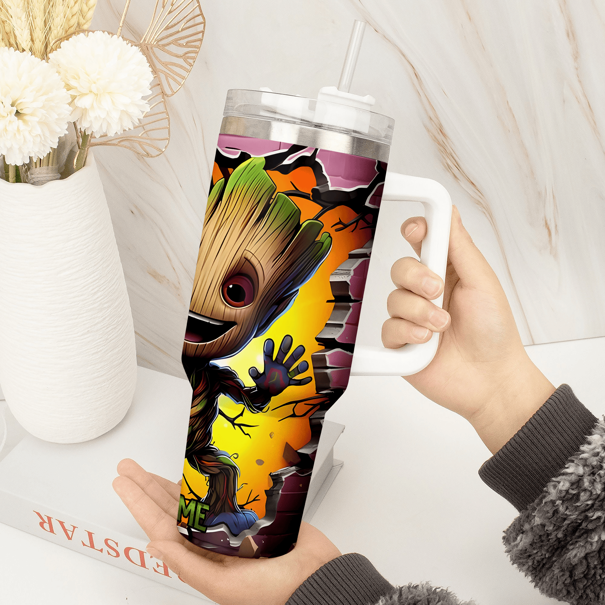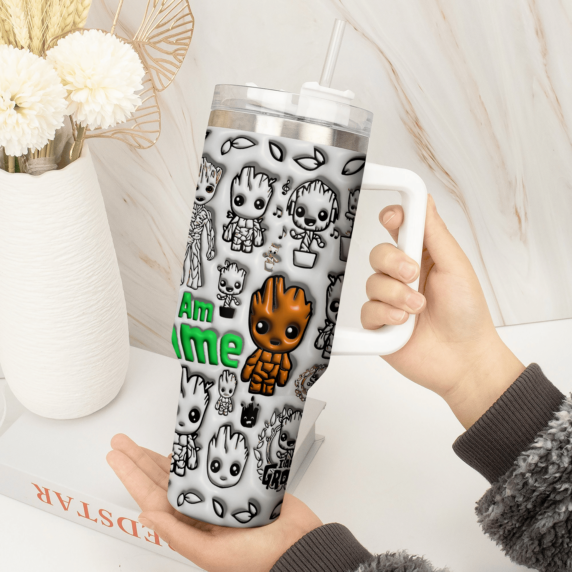 3D Baby Groot Cartoon Custom Stanley Cup 40 oz Tumbler With Handle