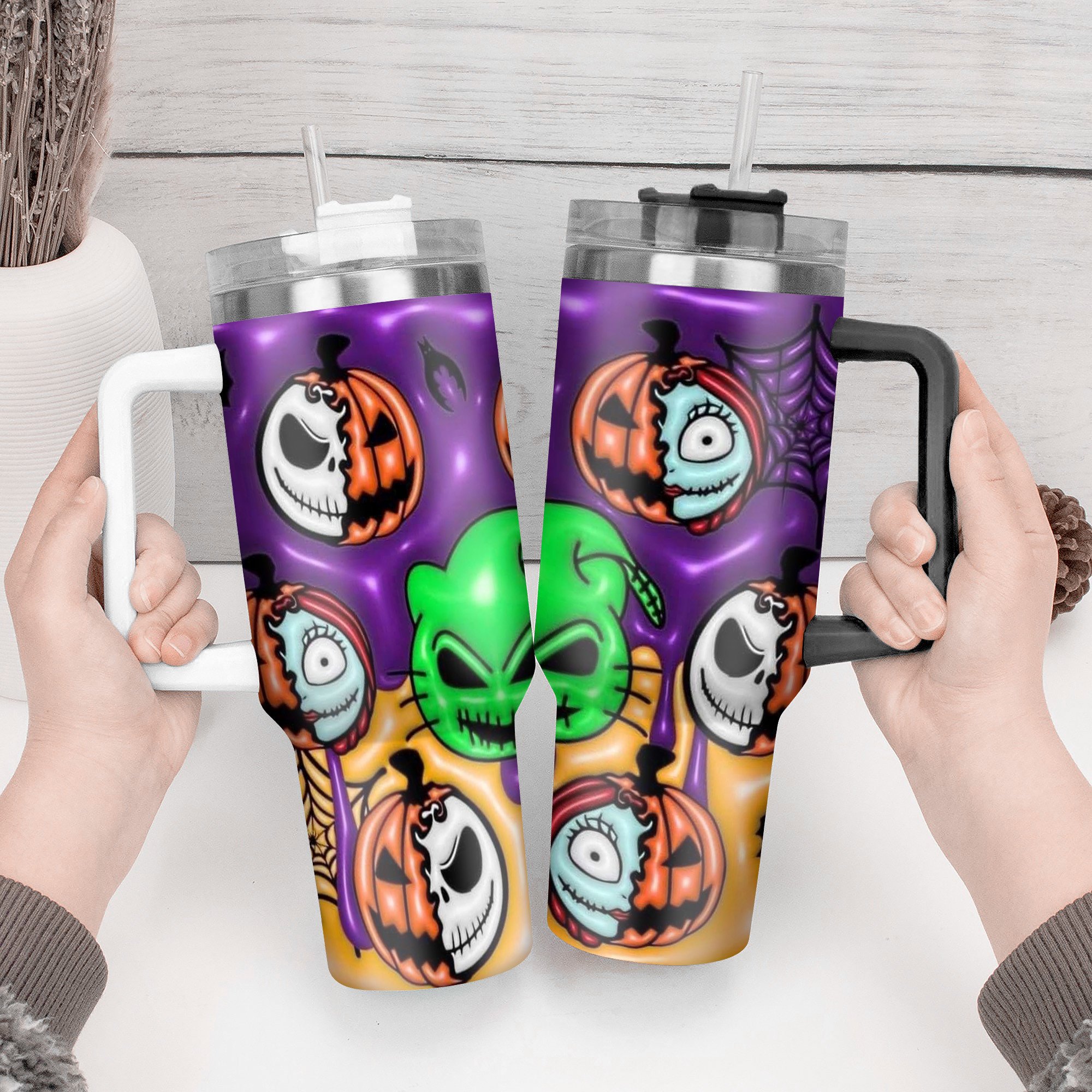 3D Jack and Sally Movies Custom Stanley Quencher 40oz Stainless Steel Tumbler With Handle