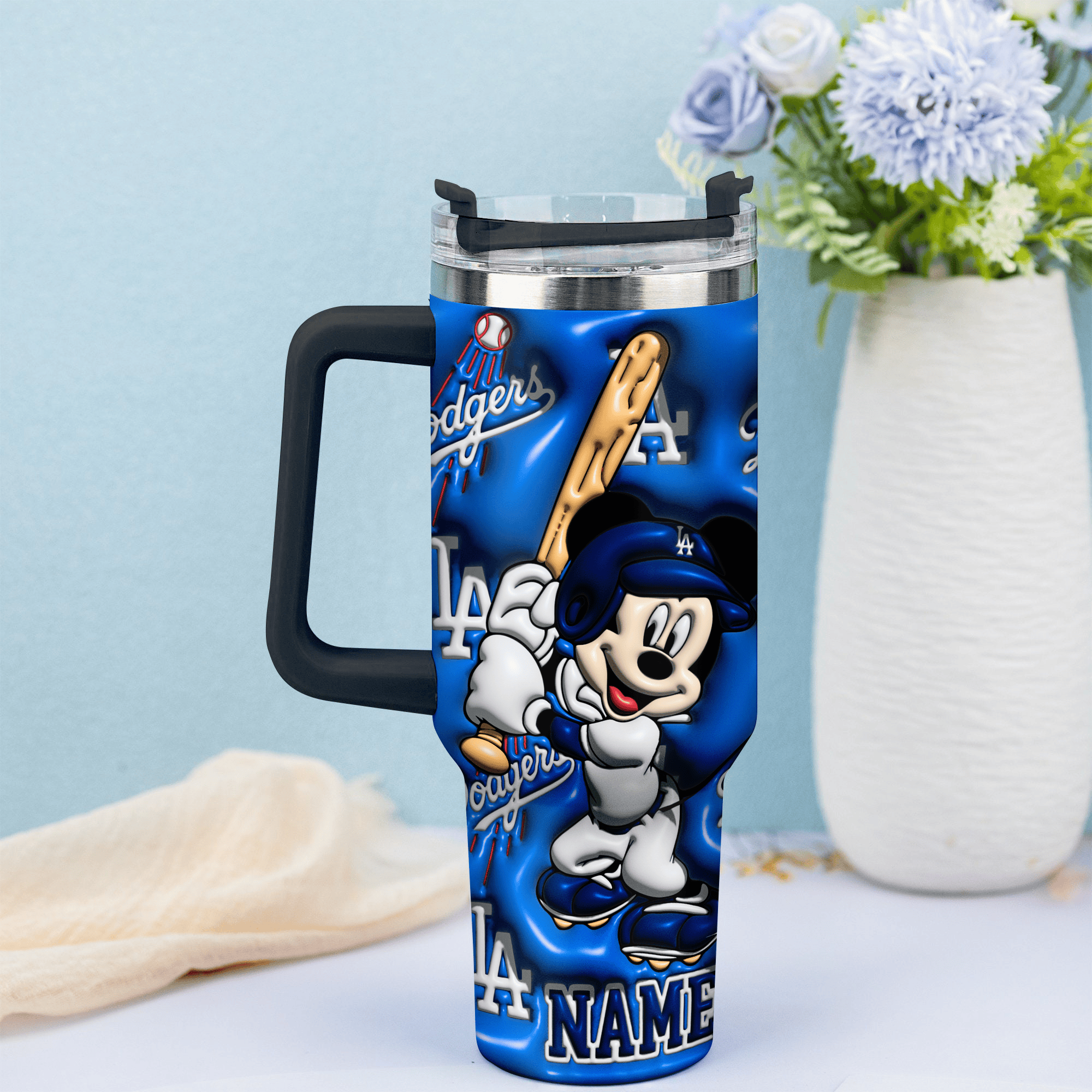 3D Mickey And Los Angeles Dodgers Cartoon,MLB Custom Stanley Quencher 40oz Stainless Steel Tumbler With Handle