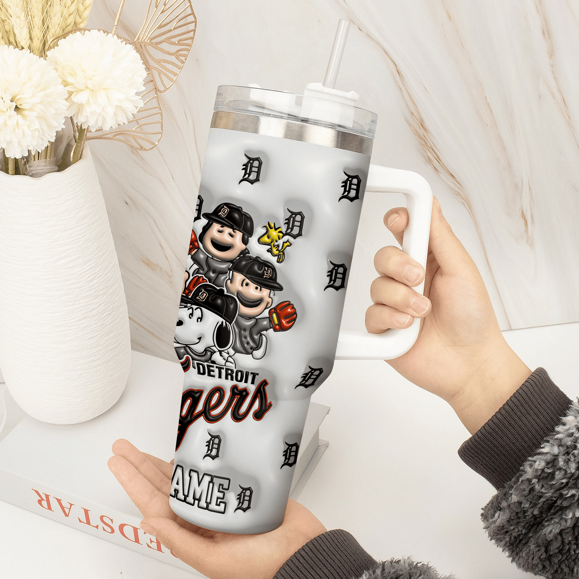 3D Snoopy and Detroit Tigers Cartoon,MLB Custom Stanley Quencher 40oz Stainless Steel Tumbler With Handle