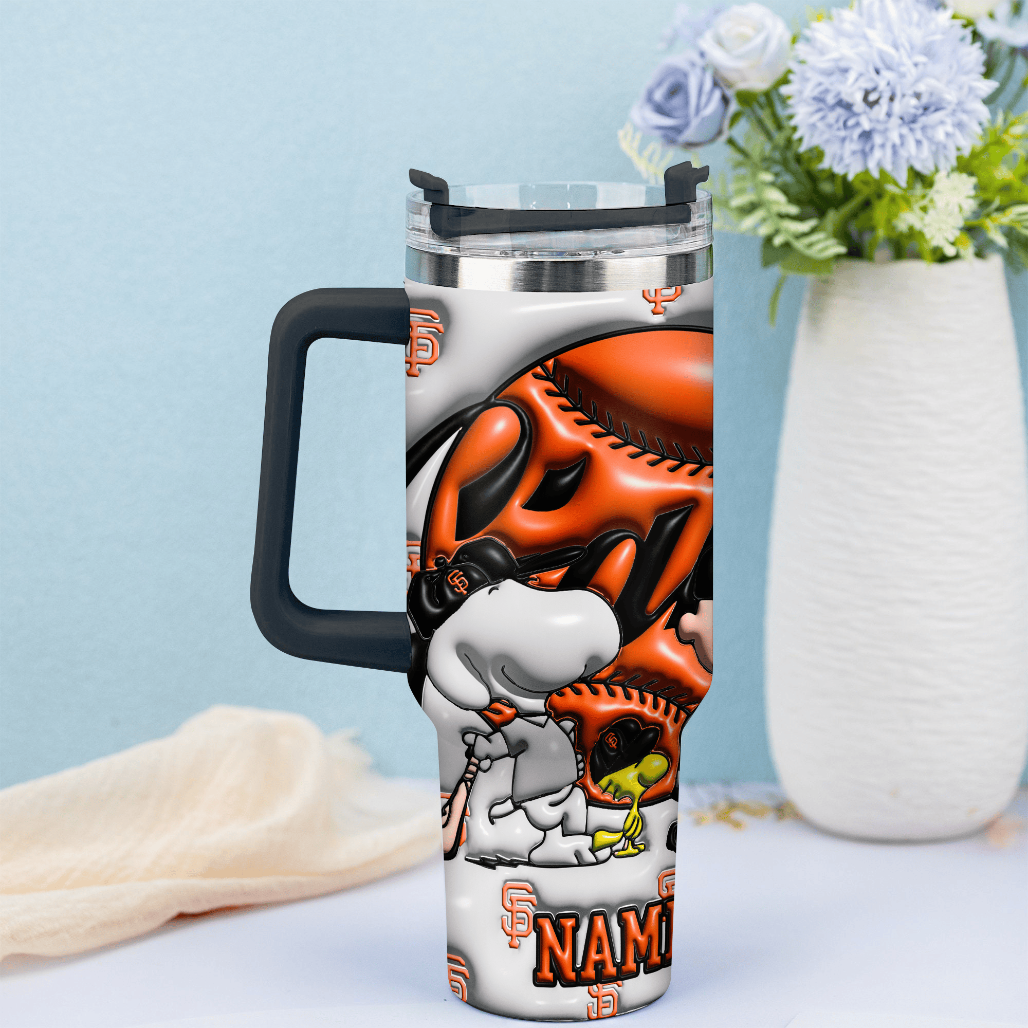 3D Snoopy and San Francisco Giants Cartoon,MLB Custom Stanley Quencher 40oz Stainless Steel Tumbler With Handle