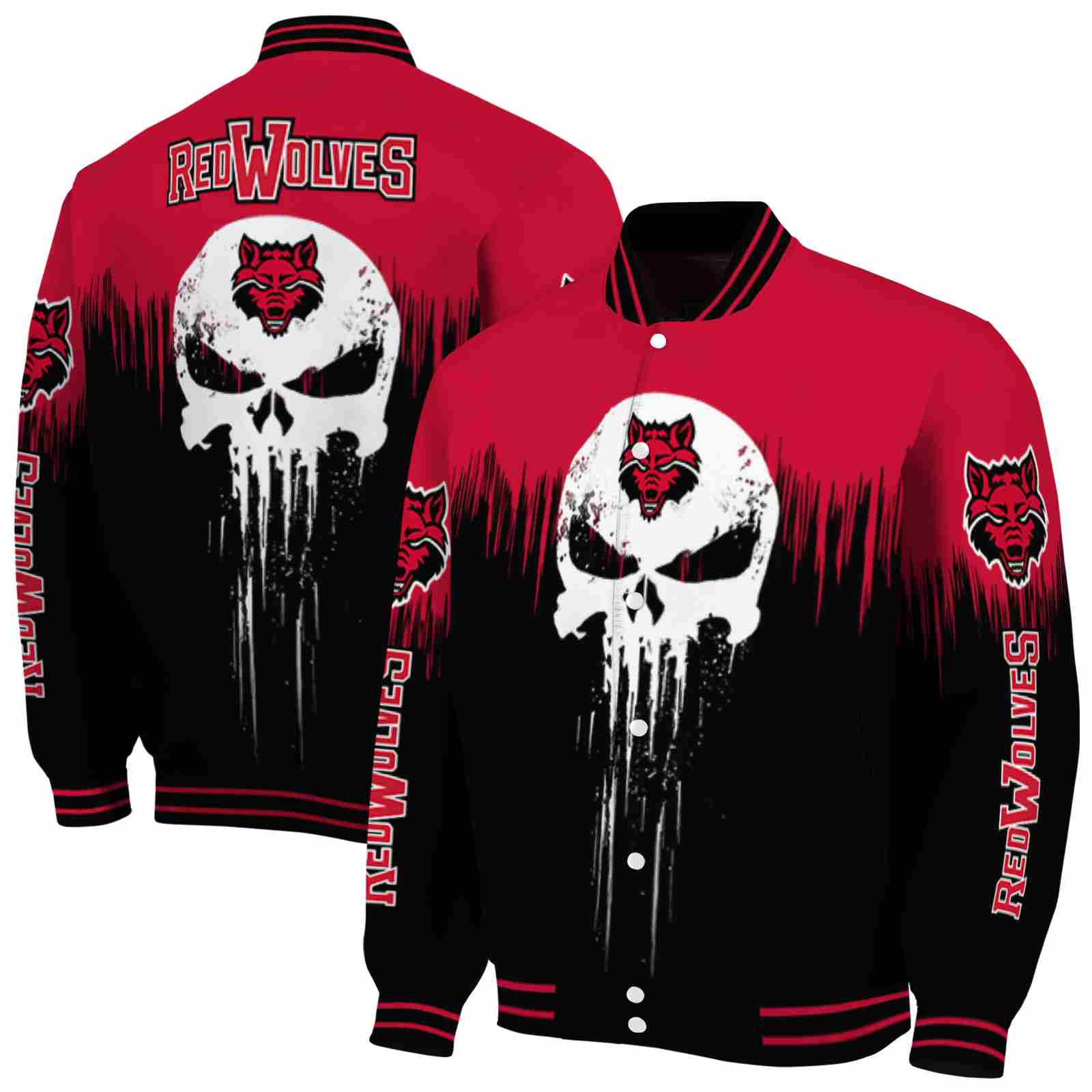 Arkansas State Red Wolves Punisher Skull Scarlet Black White Varsity Jacket