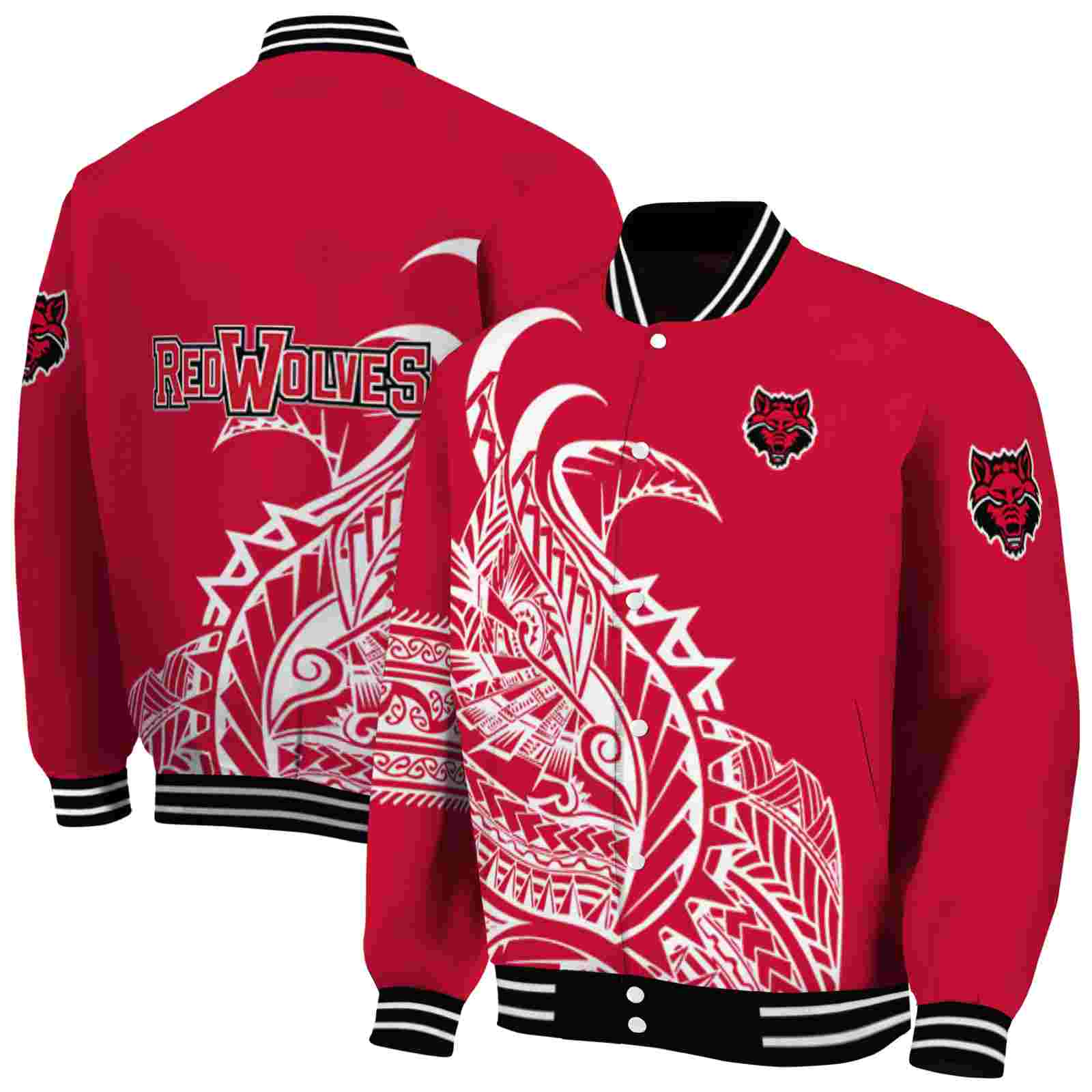 Arkansas State Red Wolves Tribal Art Scarlet White Black Varsity Jacket