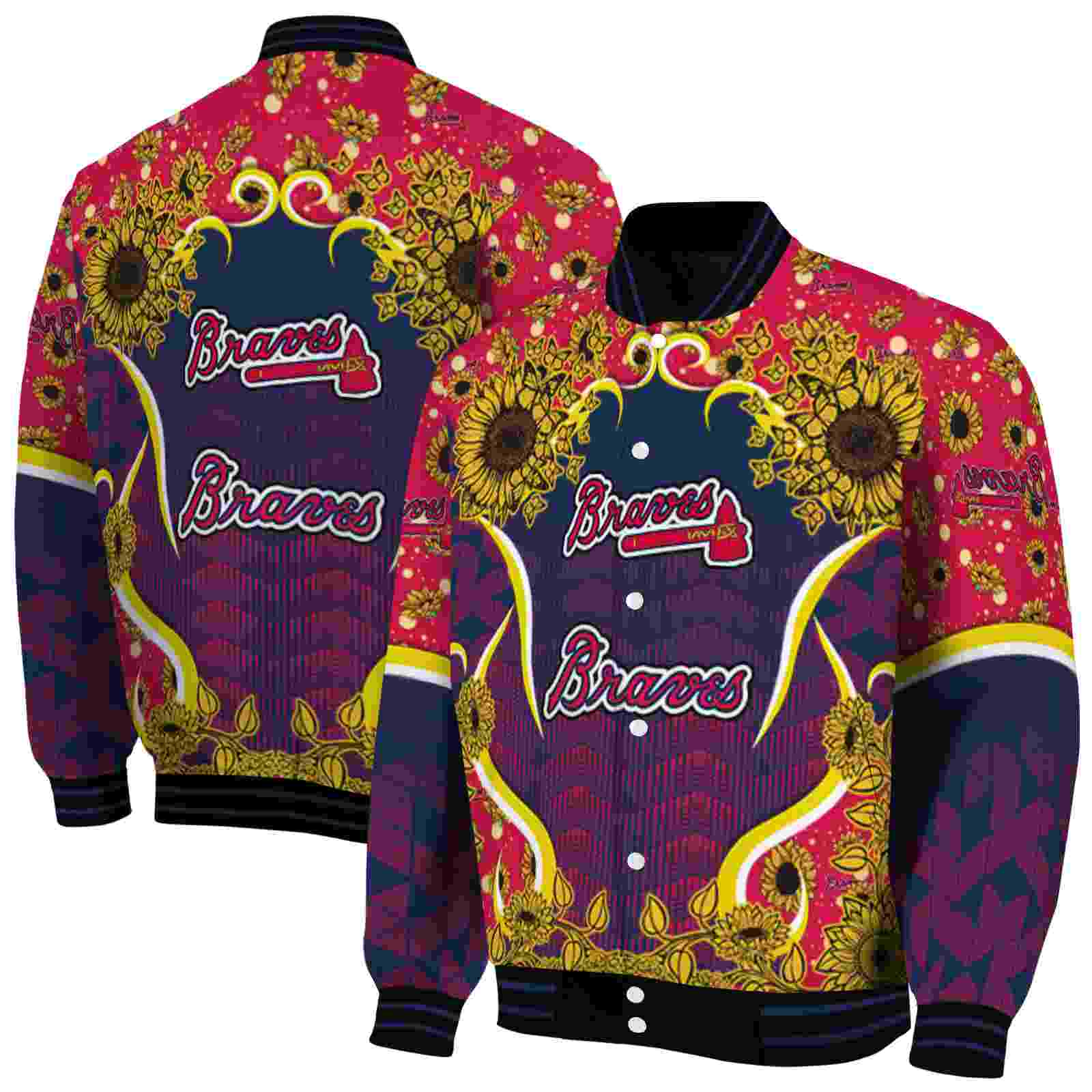 Atlanta Braves Sunflower Bloom Navy Yellow Varsity Jacket