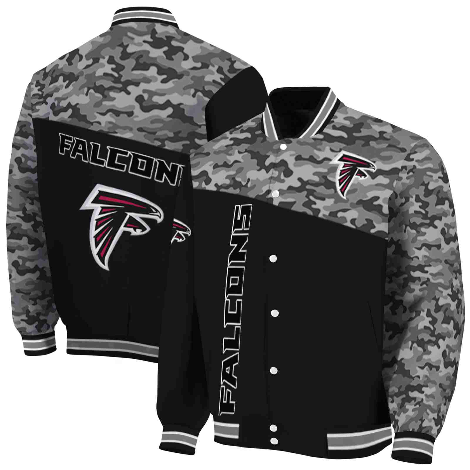 Atlanta Falcons Camo Patchwork Black Varsity Jacket
