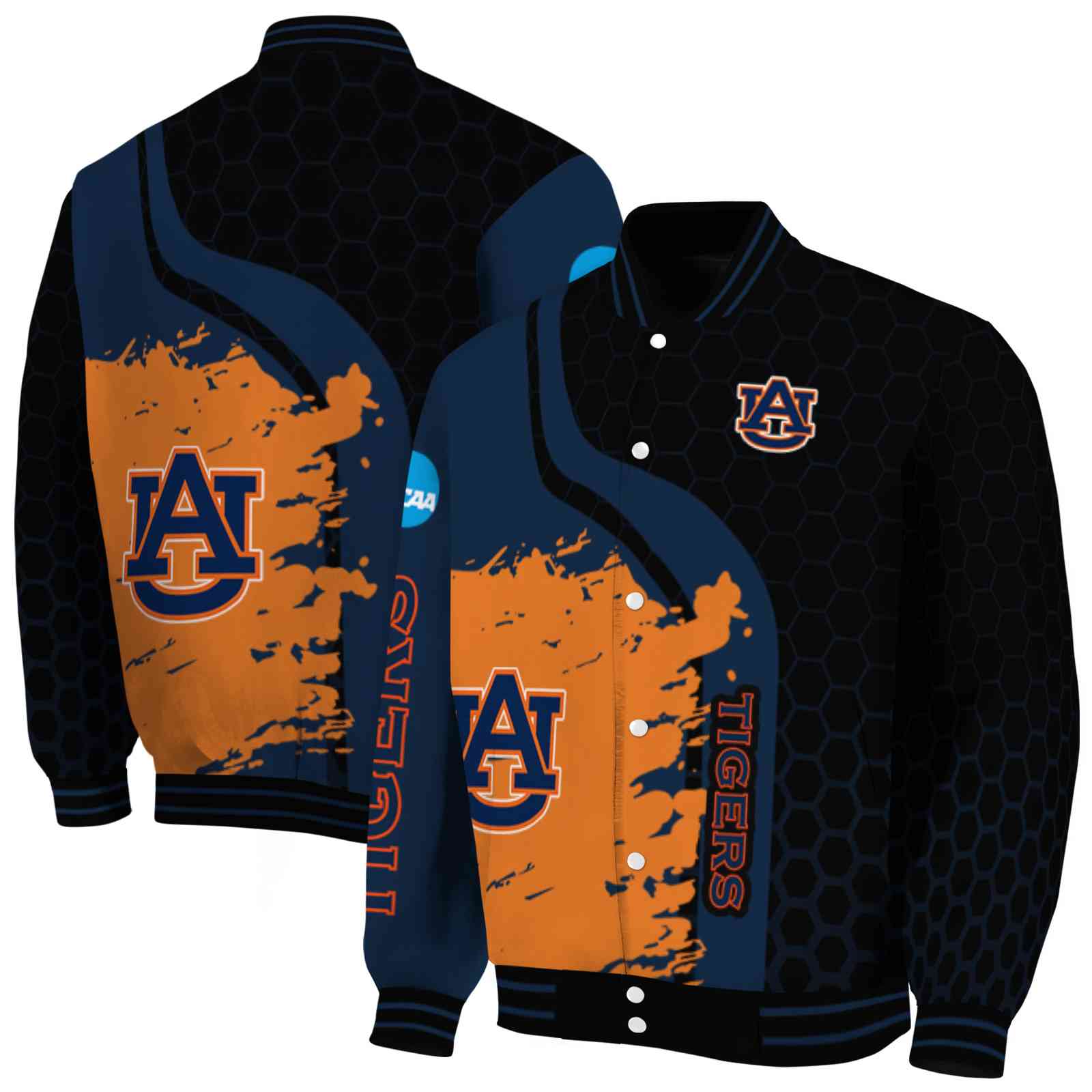 Auburn Tigers Hexagonal Pattern Navy Blue Black Varsity Jacket