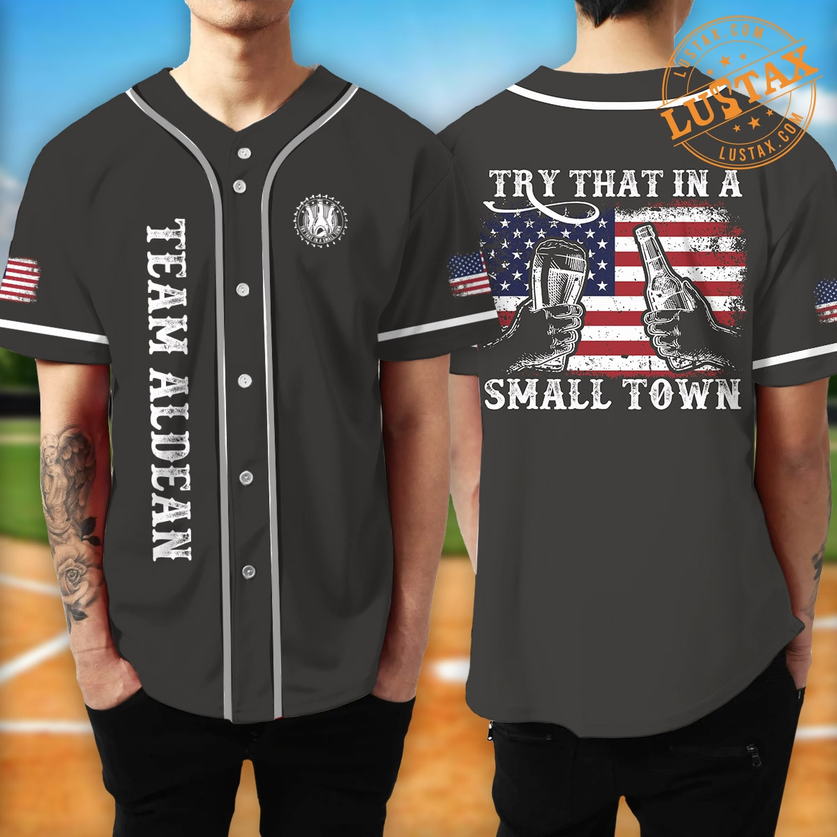 ??ry That In A Small Town??Beer Baseball Jersey USA Flag