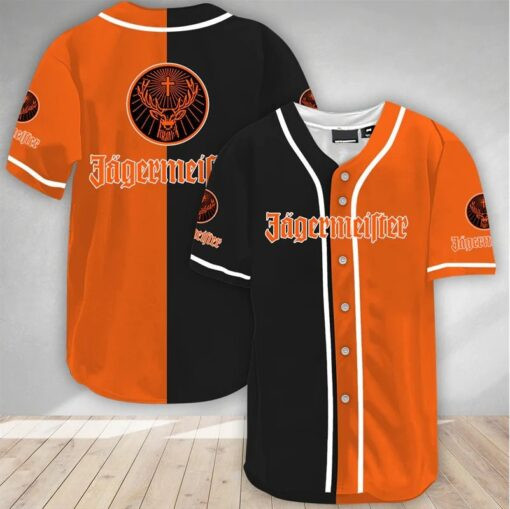Black And Orange Split Jagermeister Love Beer Baseball Jersey, Split Jagermeister Jersey For Men Women