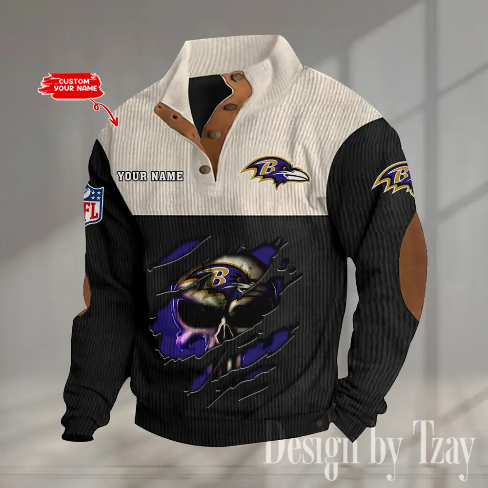 Baltimore Ravens Casual Outdoor Collar Pullover Button Quarter Sweater For mens