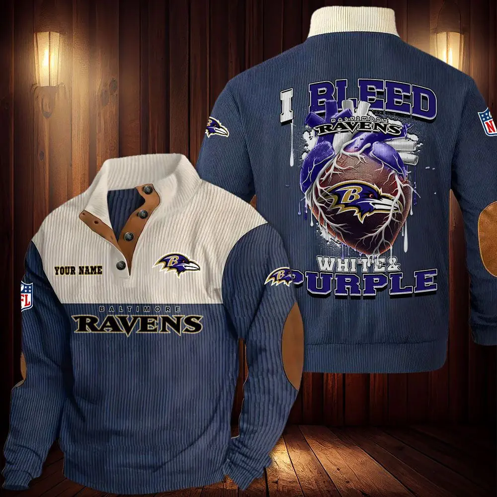 Baltimore Ravens Custom Button Quarter Sweater Men