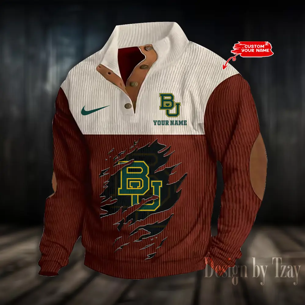 Baylor Bears NCAA Casual Outdoor Collar Pullover Button Quarter Sweater For mens