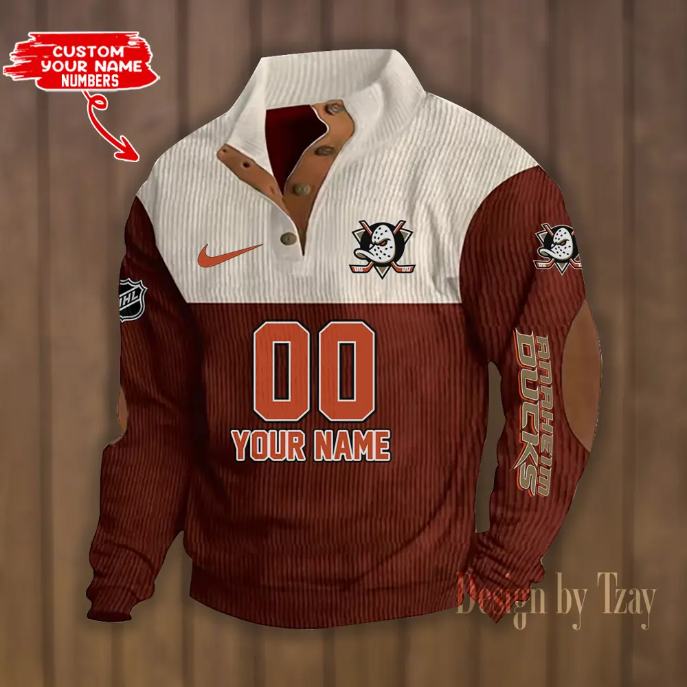 Anaheim Ducks NHL Casual Outdoor Collar Pullover Button Quarter Sweater For mens
