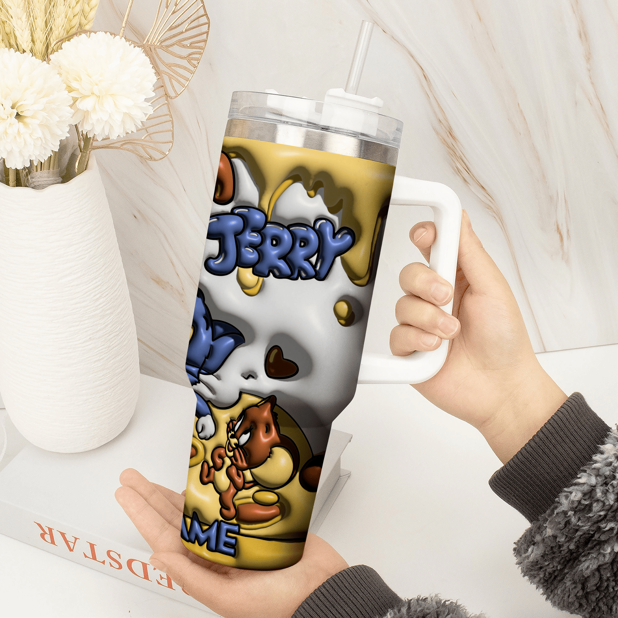 3D Tom and Jerry Cartoon Custom Stanley Cup 40 oz Tumbler With Handle