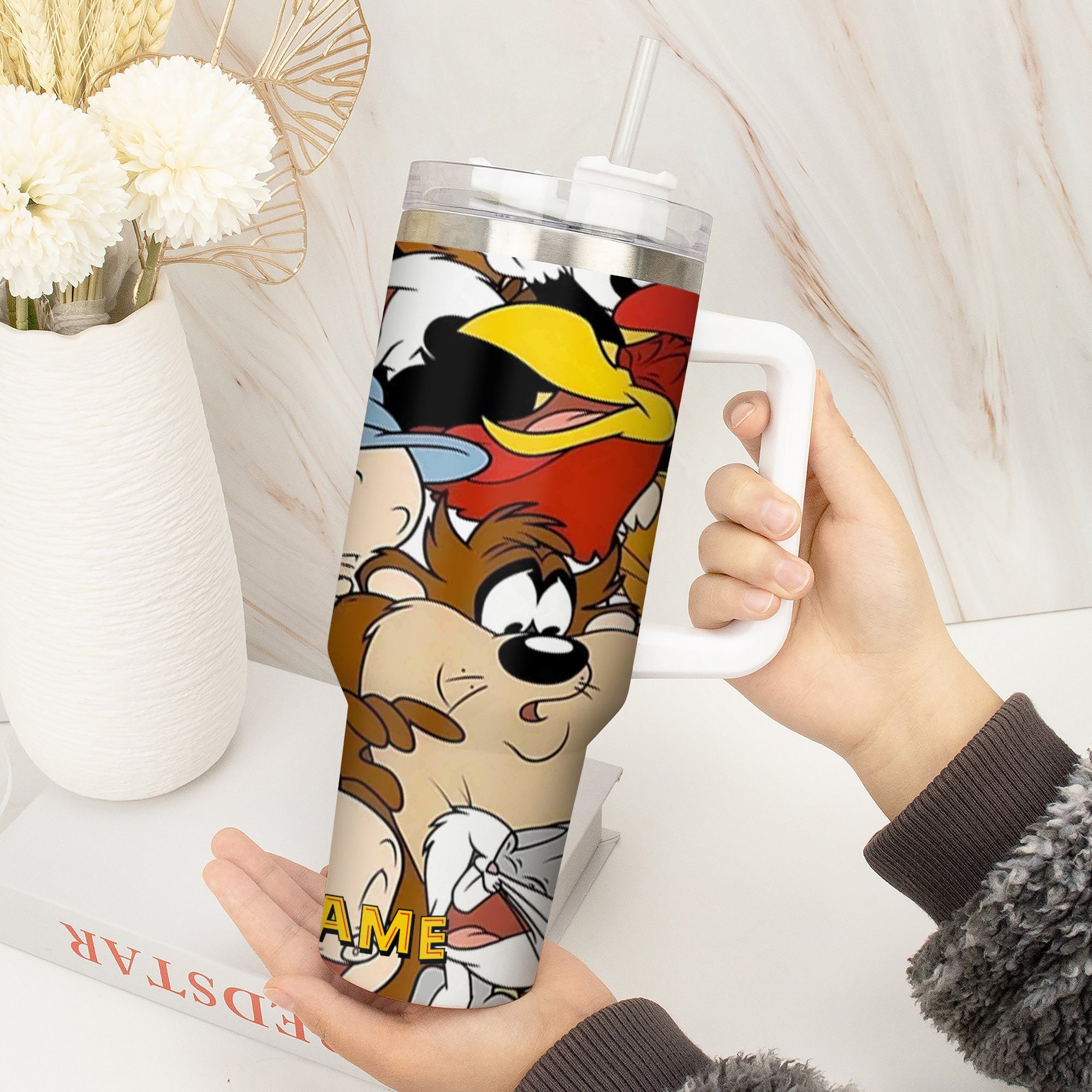 80s and 90s Cartoon Custom Stanley Quencher 40oz Stainless Steel Tumbler With Handle
