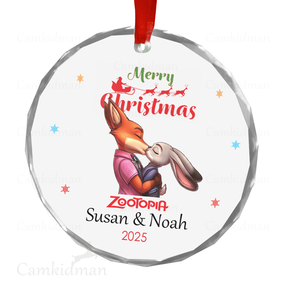 Zootopia Fox And Bunny Round Holiday Decor 2025 Glass Christmas Ornament
