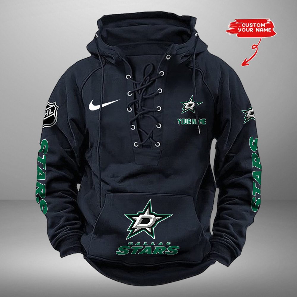 Dallas Stars NHL Retro Lace Up Hoodie Custom Name Mens Vintage