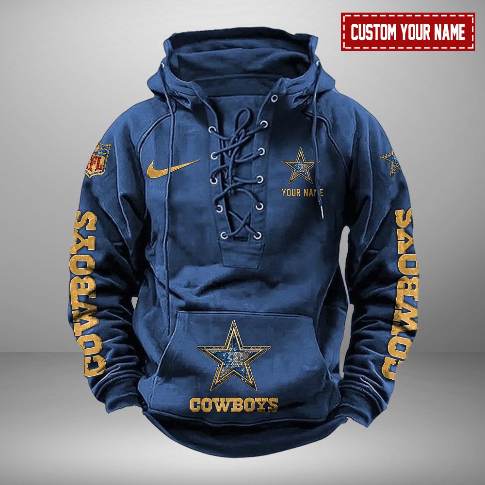 Dallas Cowboys NFL Retro Lace Up Hoodie Personalized Mens Throwback