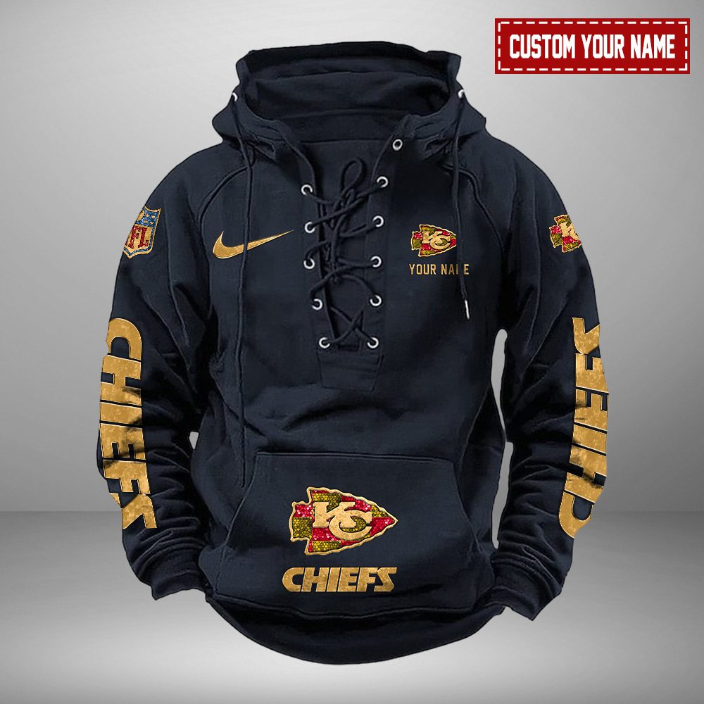 Kansas City Chiefs NFL Retro Lace Up Hoodie Personalized Mens Throwback