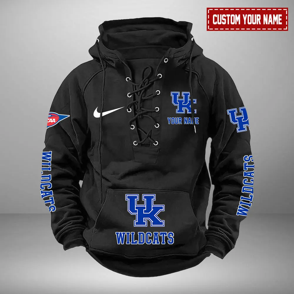 Kentucky Wildcats NCAA Retro Lace Up Hoodie Custom Name Mens Vintage