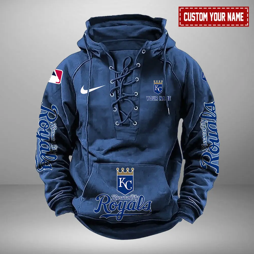 Kansas City Royals MLB Retro Lace Up Hoodie Personalized Mens Pullover