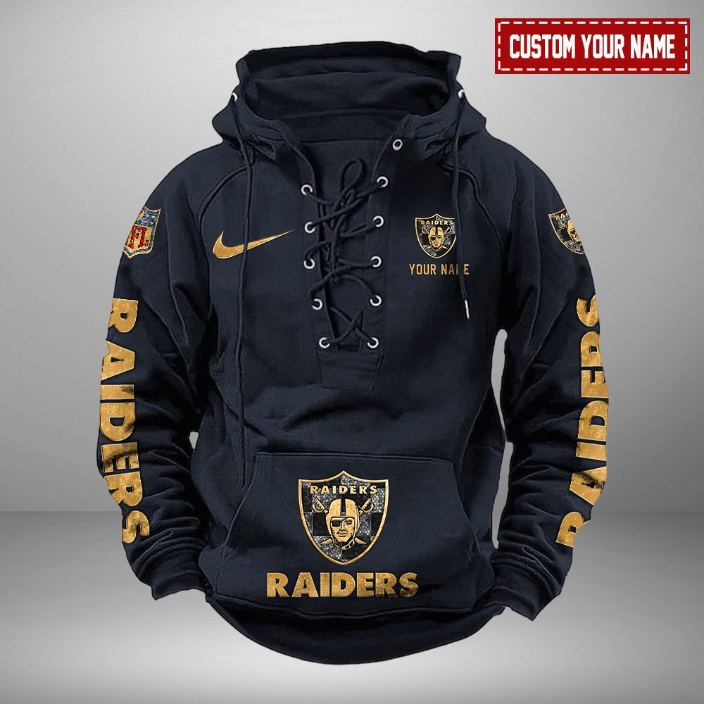 Las Vegas Raiders NFL Retro Lace Up Hoodie Personalized Mens Throwback