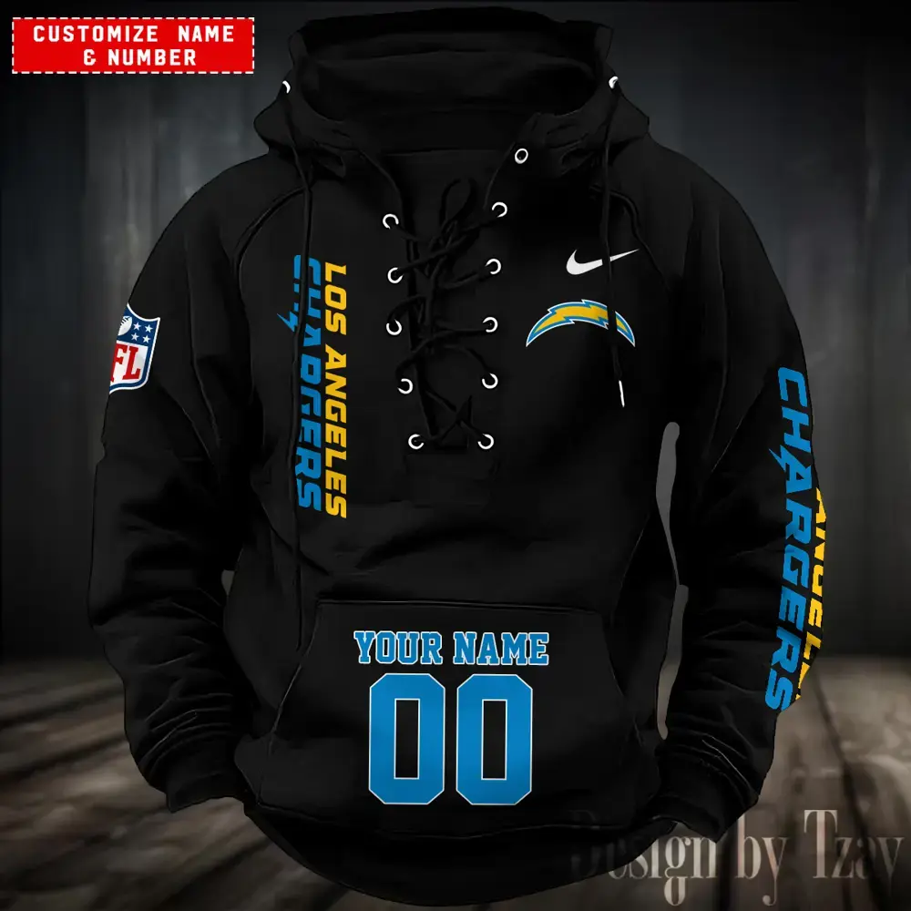 Los Angeles Chargers black Men Hooded Lace up Hoodie