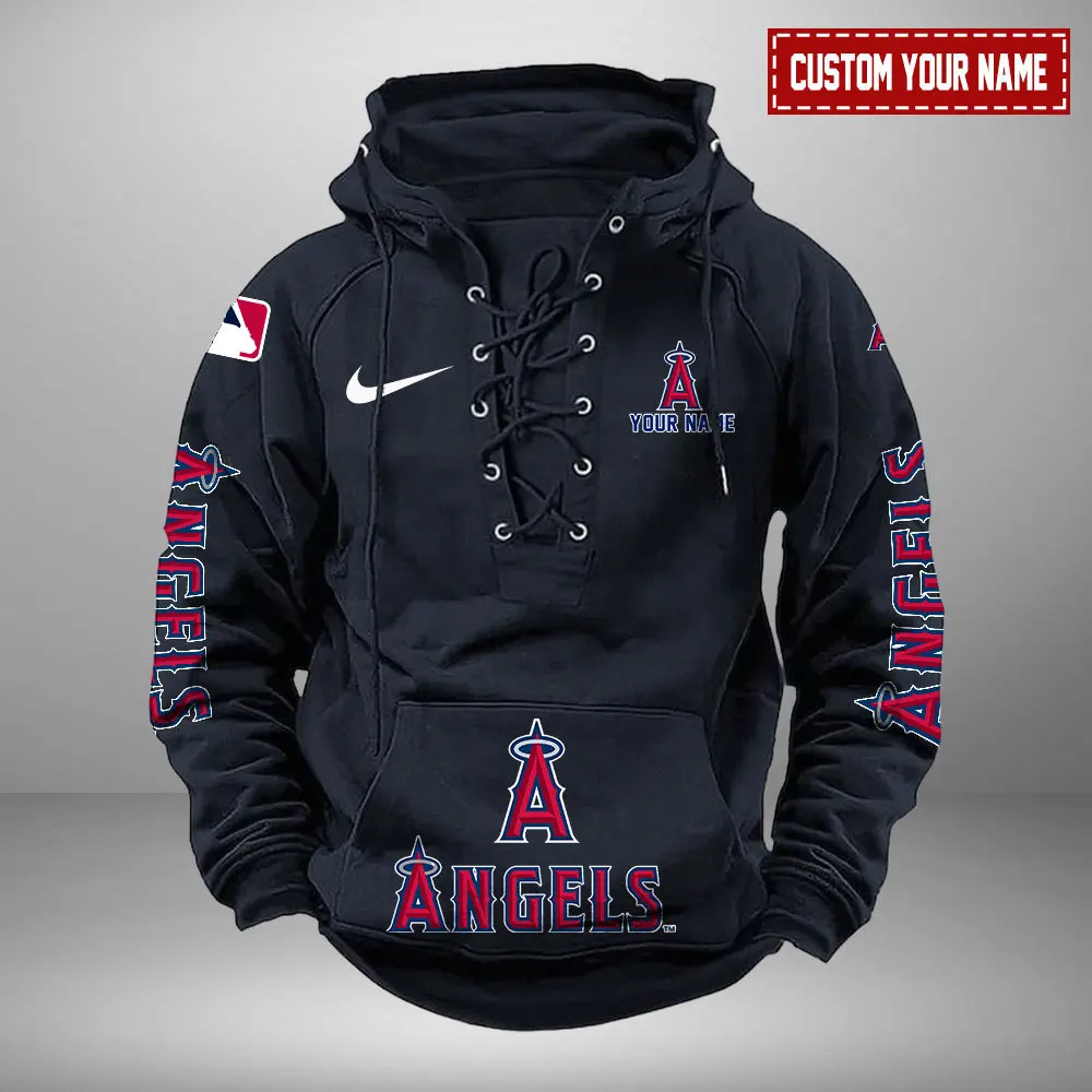 Los Angeles Angels MLB Retro Lace Up Hoodie Personalized Mens Throwback