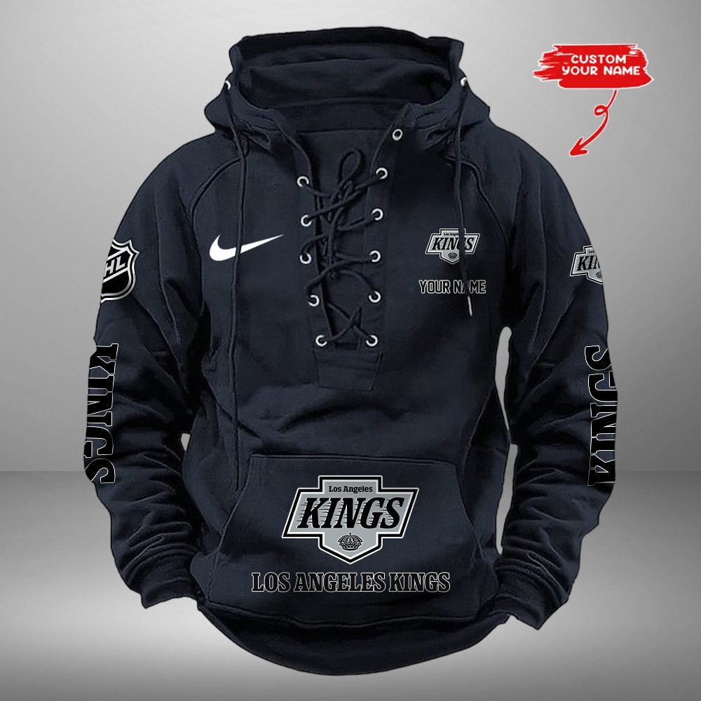 Los Angeles Kings NHL Retro Lace Up Hoodie Custom Name Mens Throwback