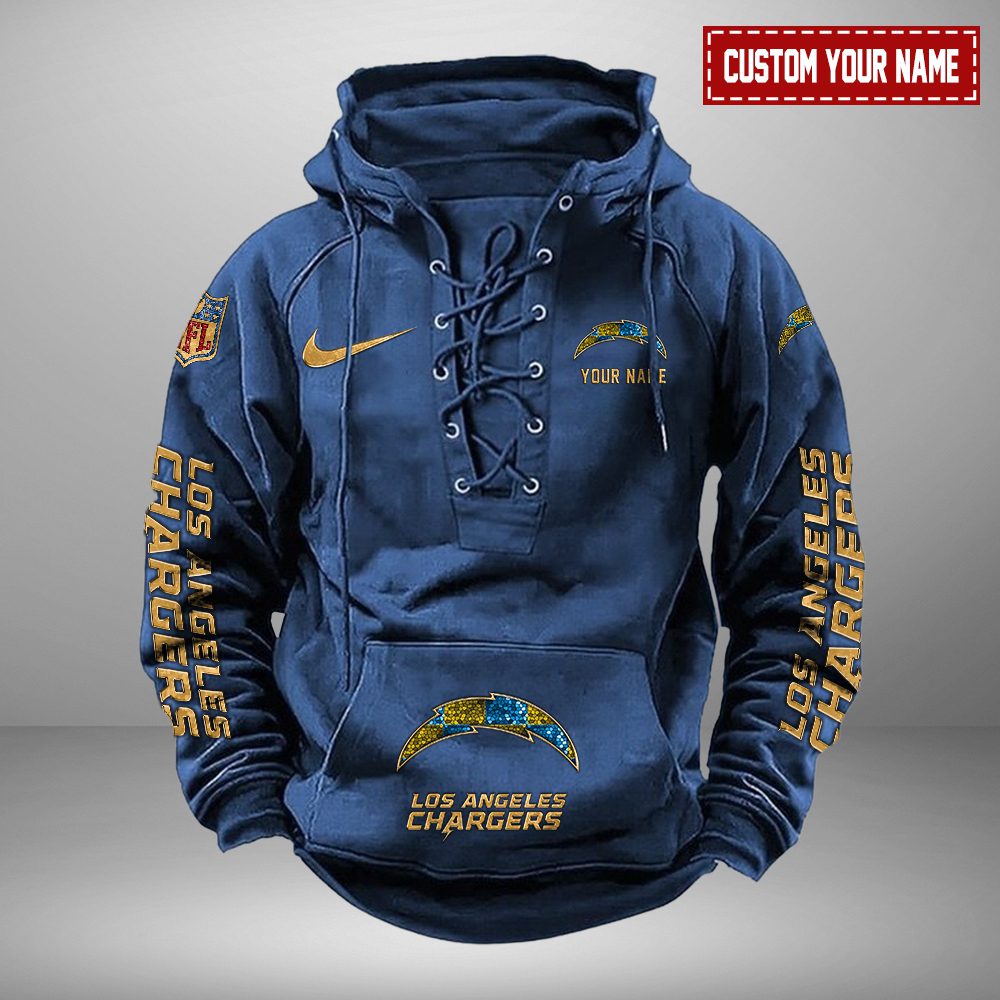Los Angeles Chargers NFL Retro Lace Up Hoodie Personalized Mens Vintage