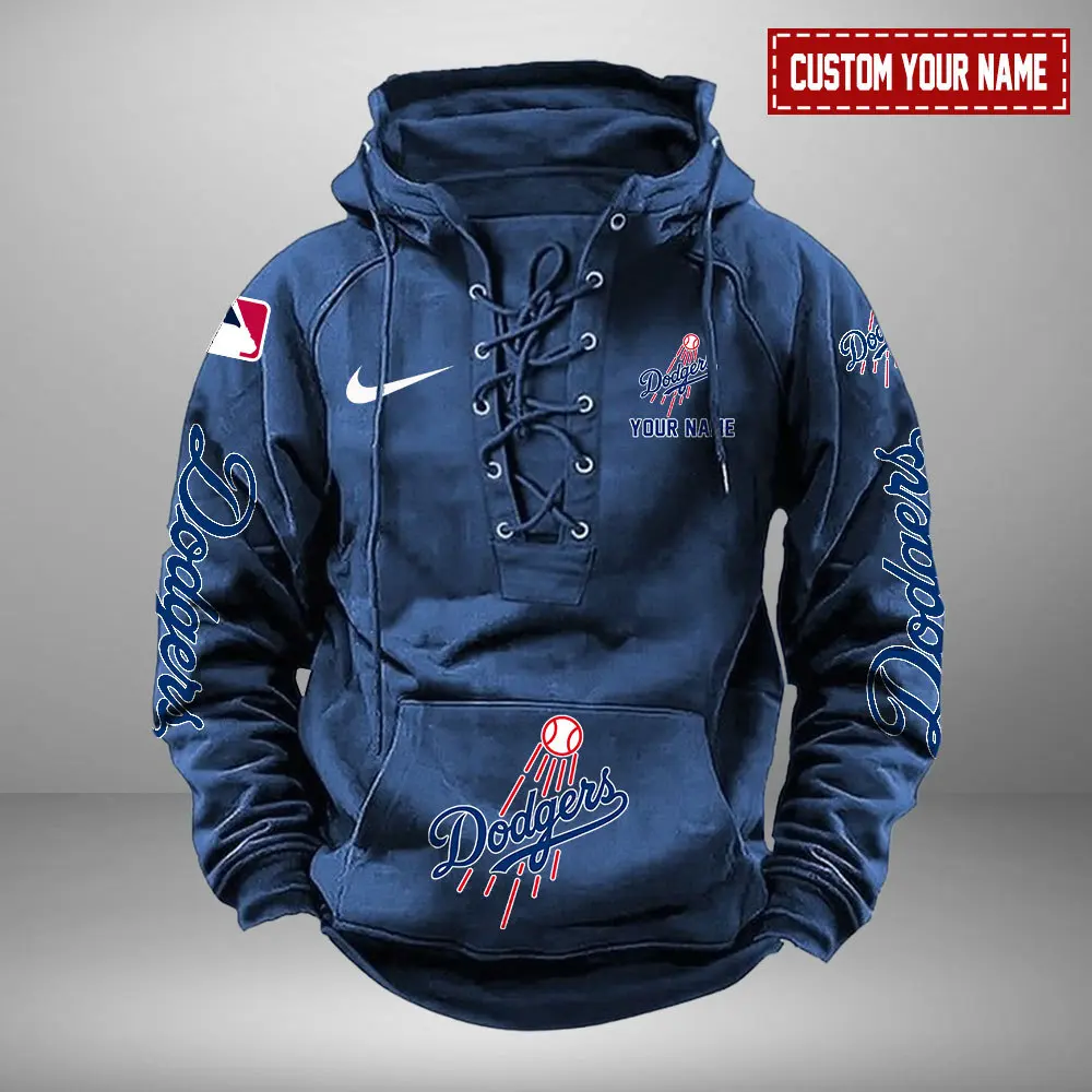 Los Angeles Dodgers MLB Retro Lace Up Hoodie Personalized Mens Throwback