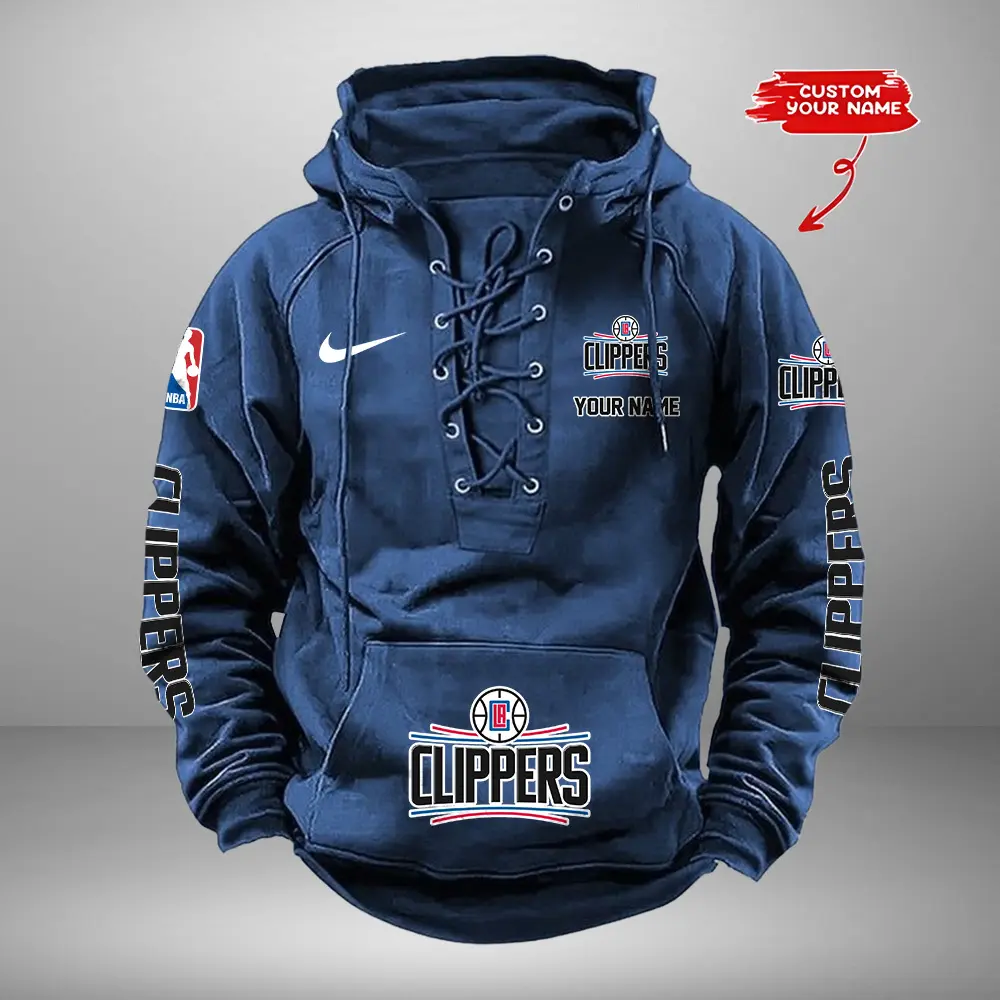 Los Angeles Clippers NBA Retro Lace Up Hoodie Personalized Mens Vintage