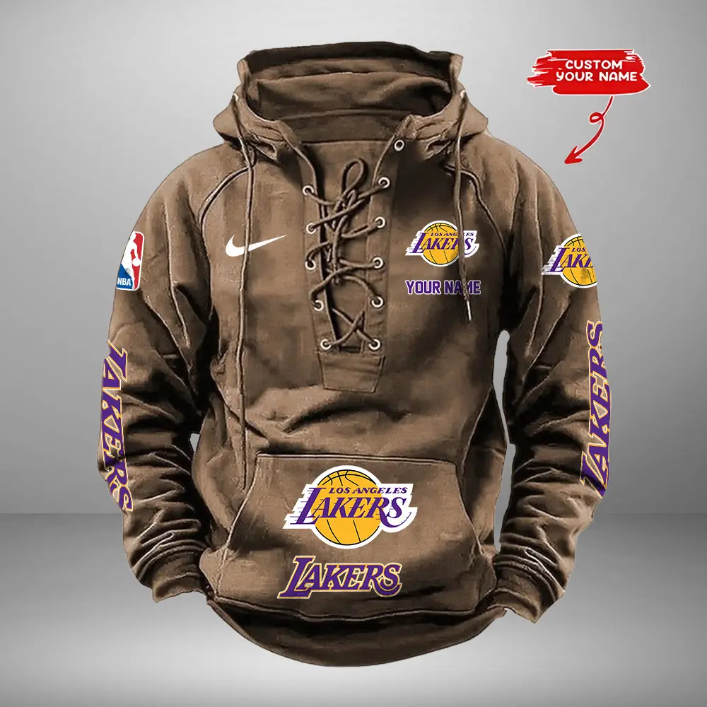 Los Angeles Lakers NBA Retro Lace Up Hoodie Personalized Mens Vintage