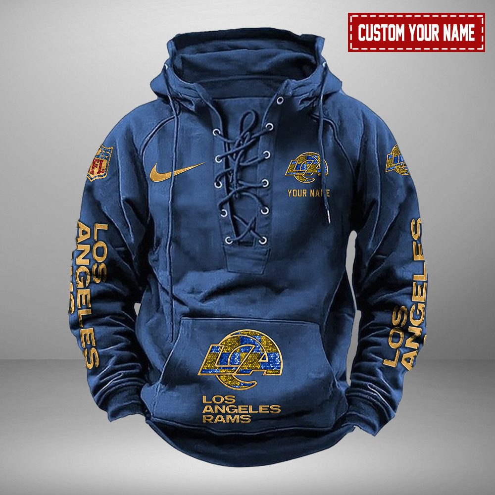 Los Angeles Rams NFL Retro Lace Up Hoodie Personalized Mens Vintage