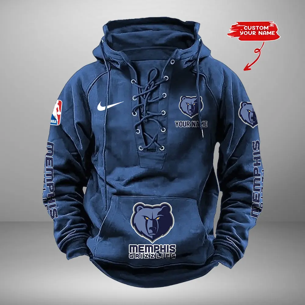 Memphis Grizzlies NBA Retro Lace Up Hoodie Personalized Mens Throwback
