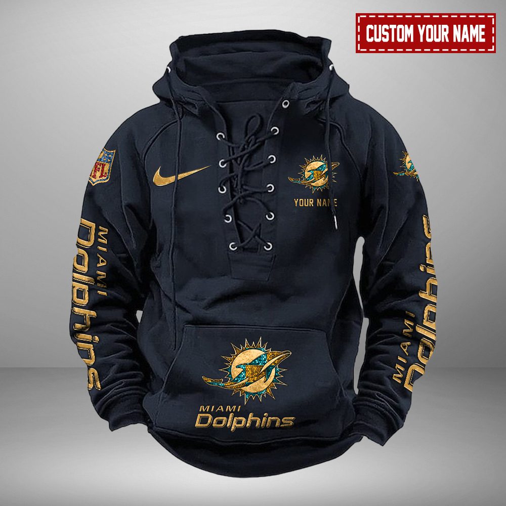 Miami Dolphins NFL Retro Lace Up Hoodie Personalized Mens Throwback