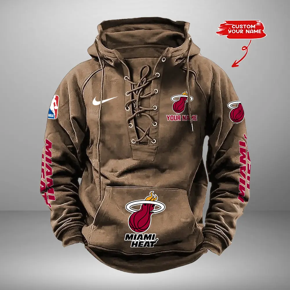 Miami Heat NBA Retro Lace Up Hoodie Personalized Mens Throwback
