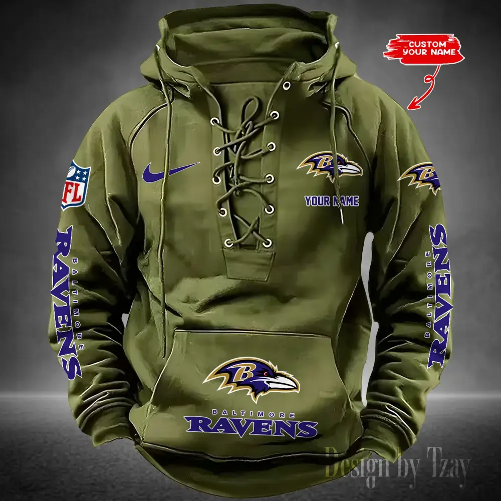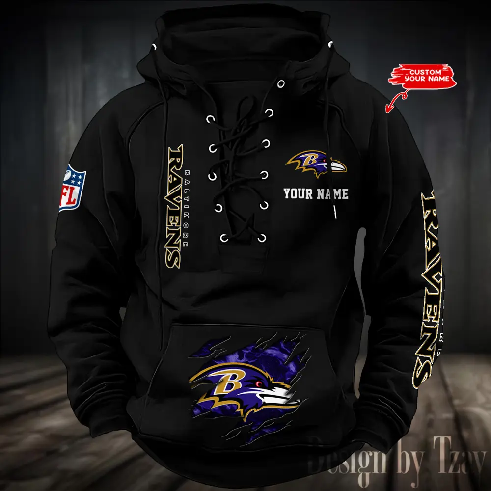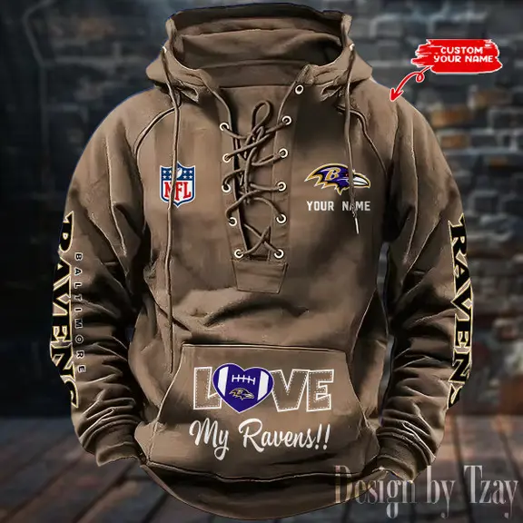Baltimore Ravens NFL Retro Lace Up Hoodie Personalized Mens Throwback