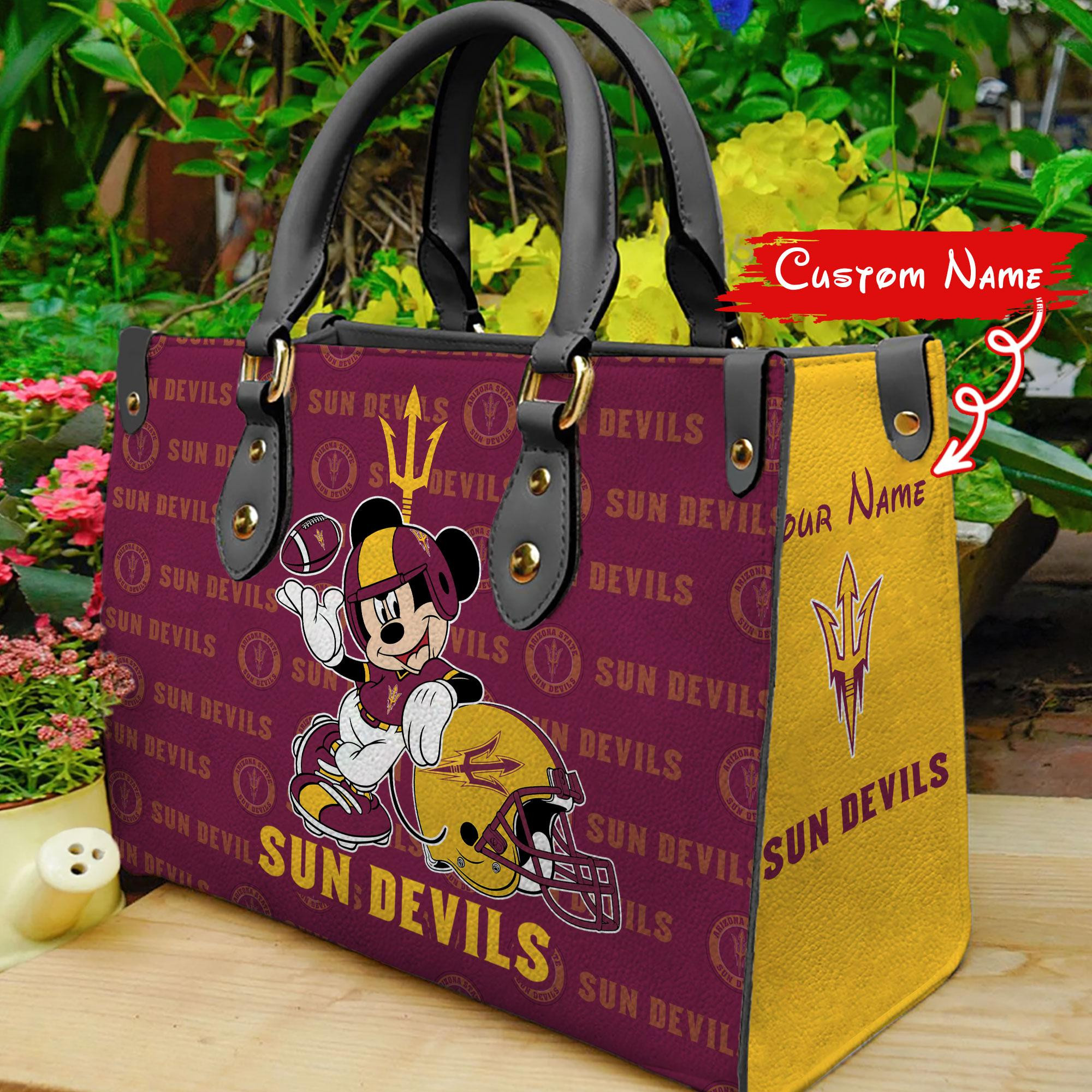 Arizona State Sun Devils Mickey Gifts For Moms, Girlfriends, Wives, Colleagues Leather Handbag For Women
