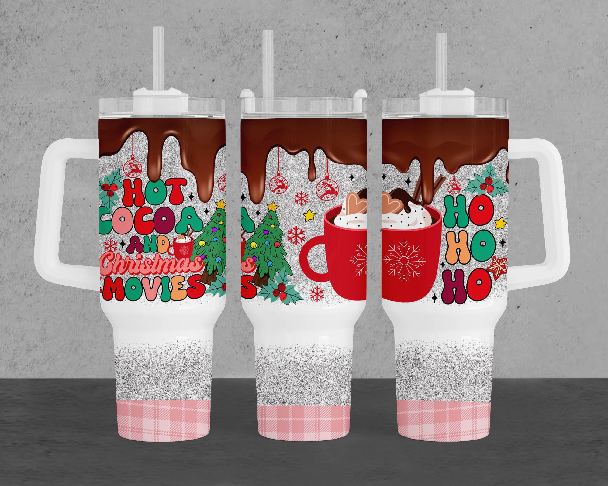 Christmas Movies And Hot Cocoa Custom Stanley Quencher 40oz Stainless Steel Tumbler With Handle