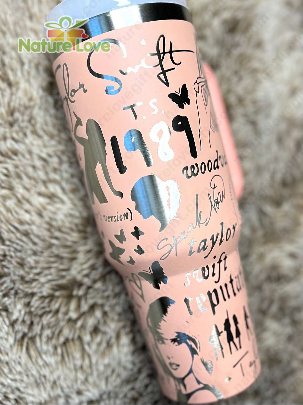 Album Engraved Taylor Swift Music Custom Stanley Quencher 40oz Stainless Steel Tumbler With Handle
