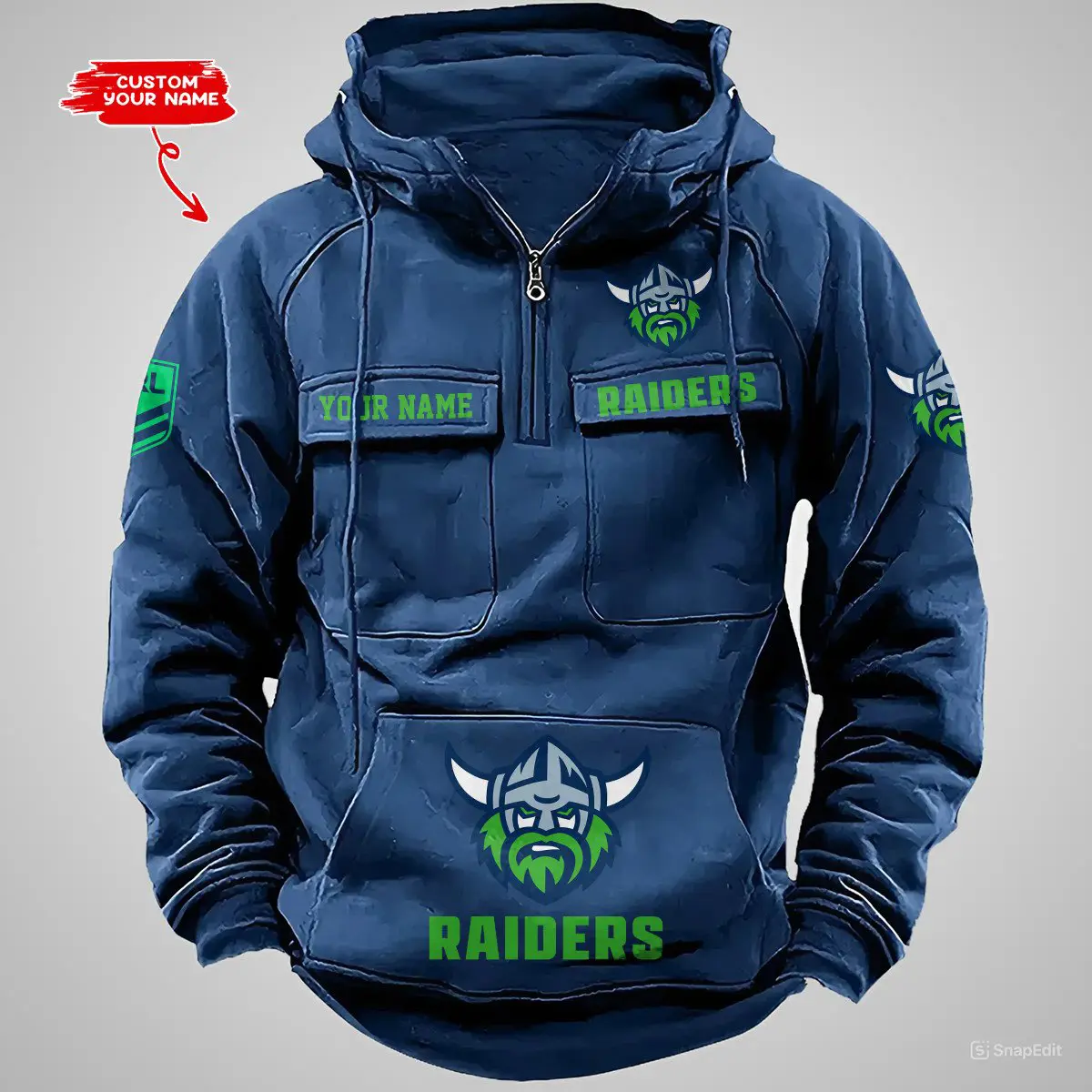 Canberra Raiders NRL Casual Outdoor Collar Pullover Button Quarter Sweater For mens