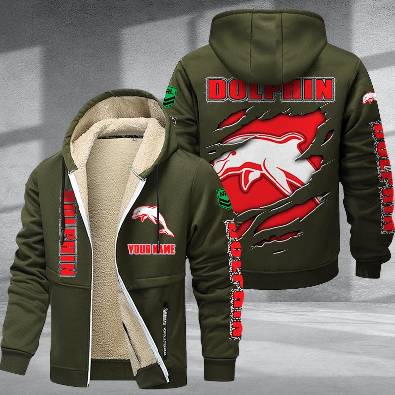 Dolphins NRL Hoodie Zip Velvet Coat Multicolor