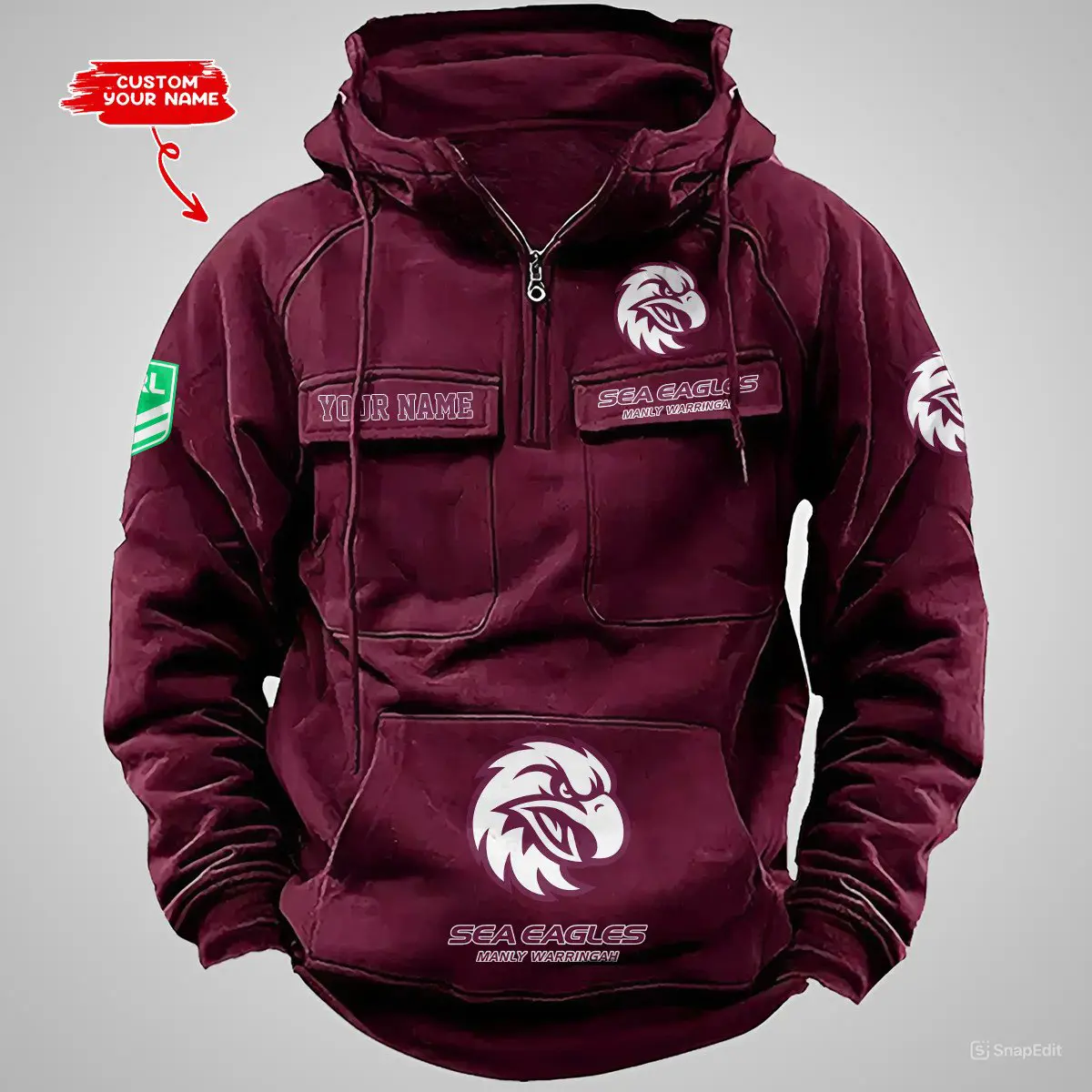 Manly Sea Eagles NRL Casual Outdoor Collar Pullover Button Quarter Sweater For mens