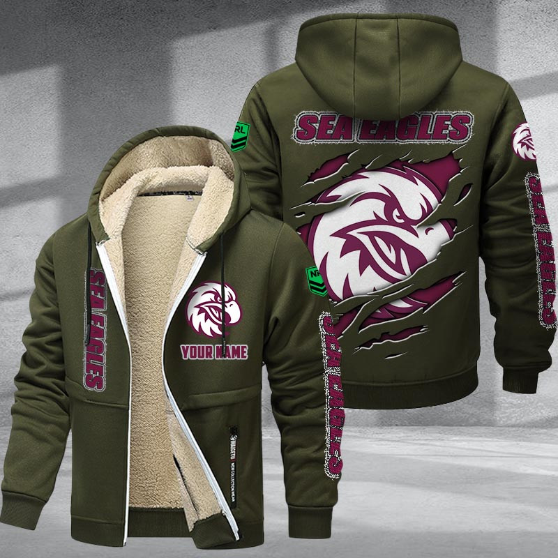 Manly Warringah Sea Eagles Hoodie Zip Velvet Coat Multicolor