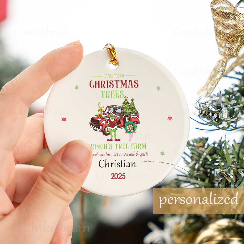 Grinch Tree Farm Round Holiday Decor 2025 Ceramic Christmas Ornament