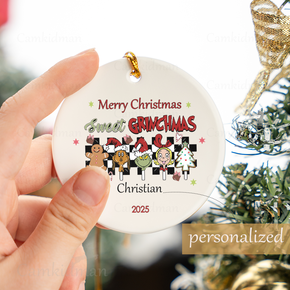 Sweet Grinchmas Family Stocking Stuffer 2025 Ceramic Christmas Ornament