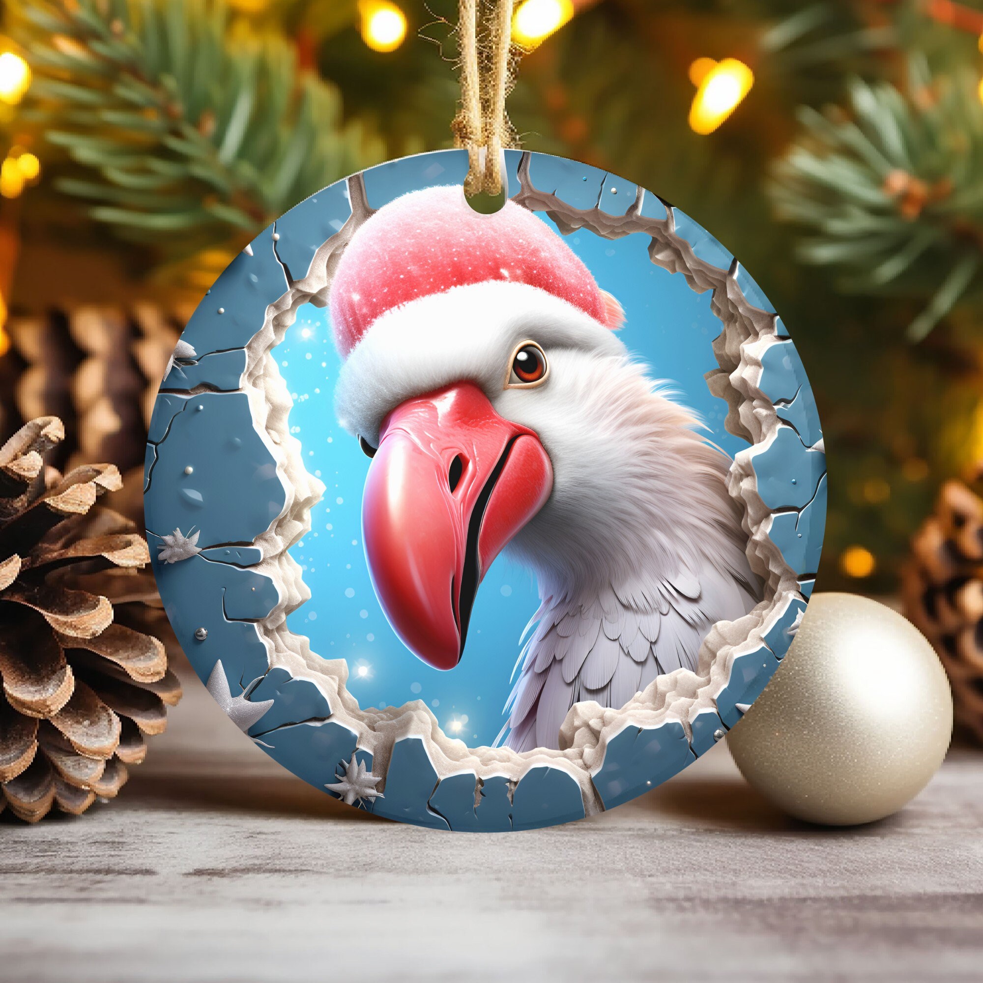 3D Flamingo Break Through Christmas Ornament Sublimation , 300 Dpi, Round Bird Ornament, Xmas Decorations