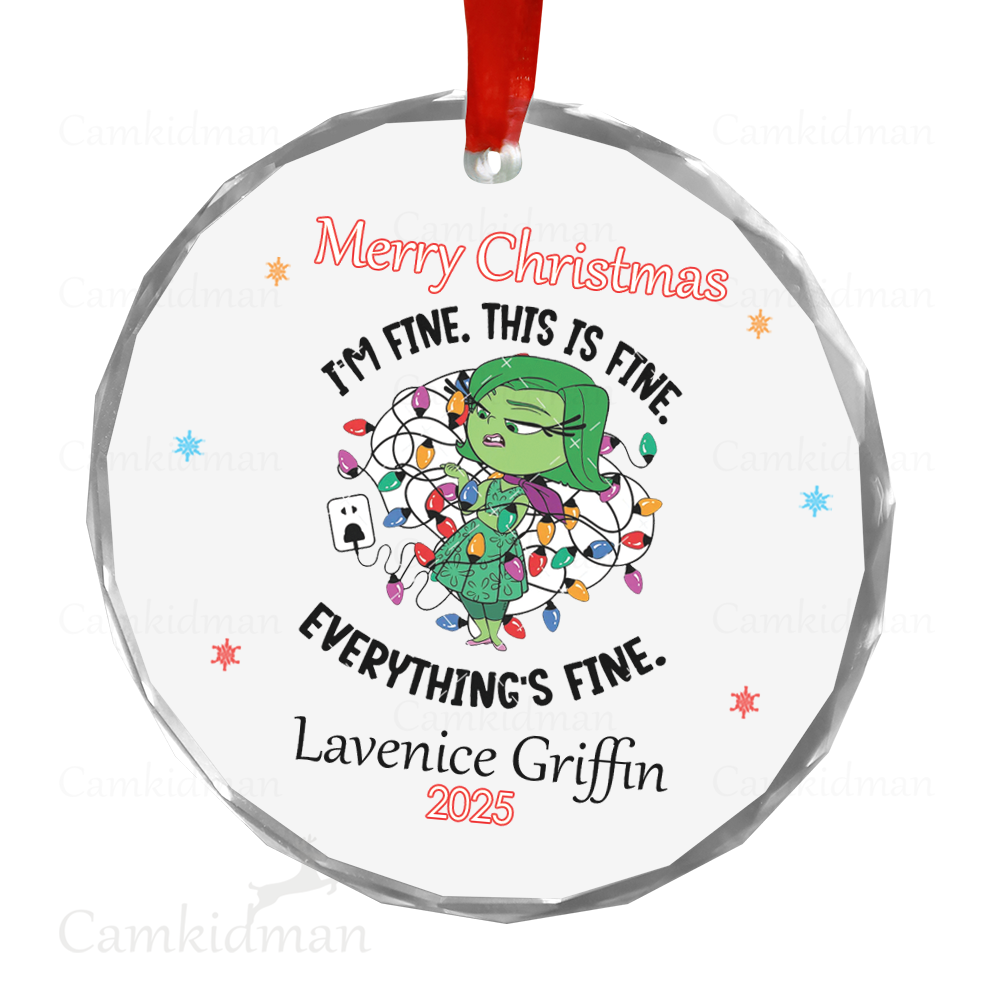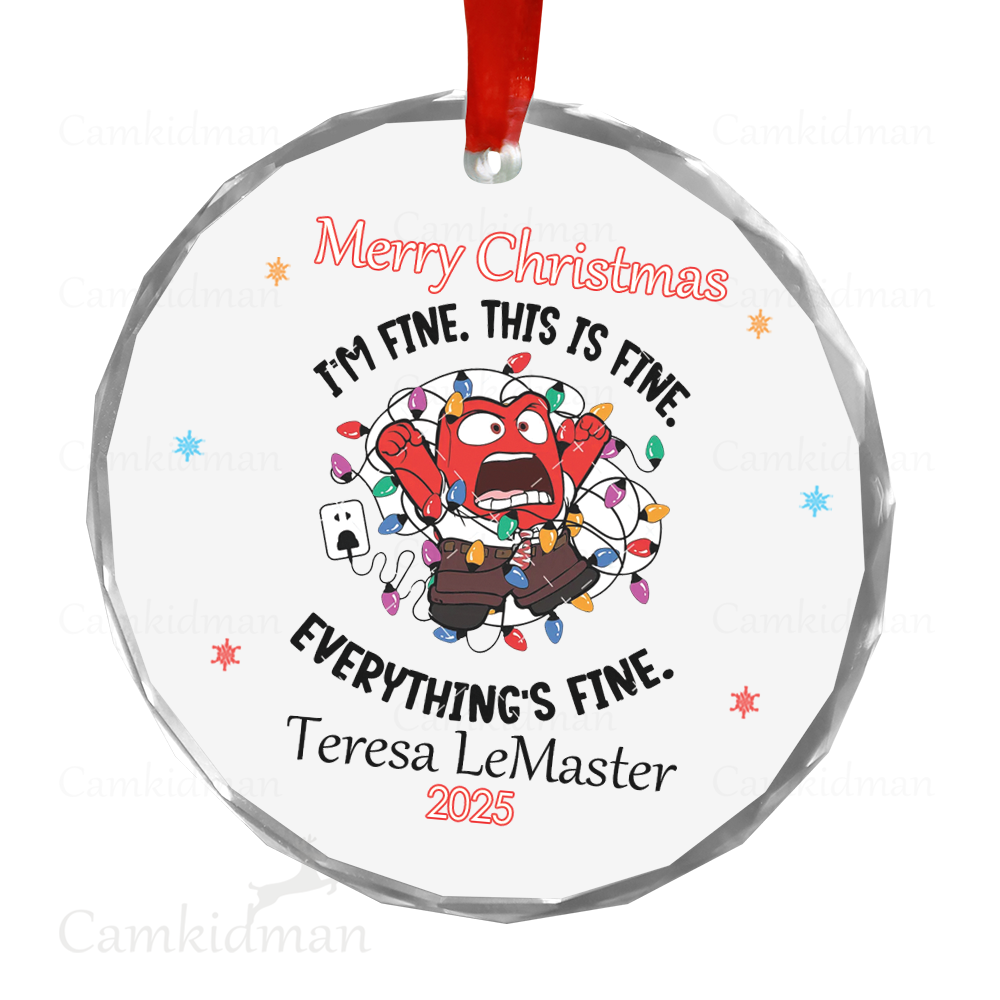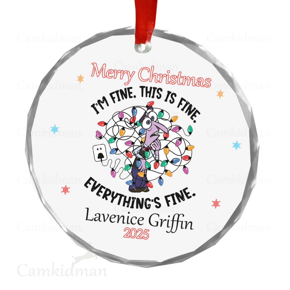 Everything Is Fine Glass Christmas Ornament 2025 Personalized Name Lights gifts family