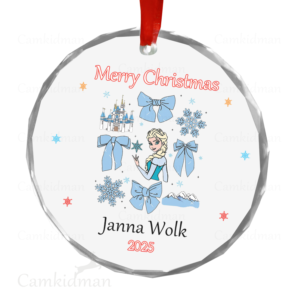 Frozen Elsa Anna Personalized Name 2025 Glass Ornament gifts kids