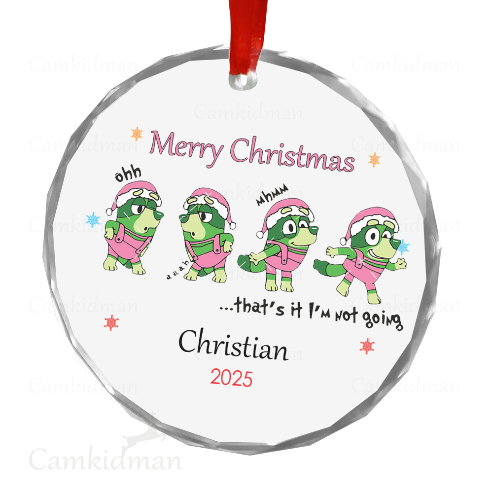 Funny Cartoon Green Characters Merry Round Glass Christmas Ornament